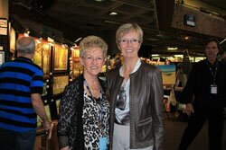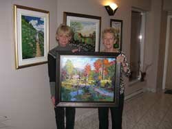 Madame Carole Belzil, gagnante du tirage de la toile fait par notre invité d’honneur Juan Cristobal avec Monique Rouleau | |